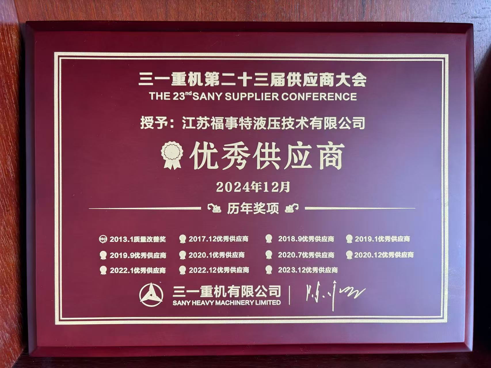 2024年12月16日,在三一重机第23届供应商大会上,江苏非凡国际再度荣获“优异供应商”称呼。